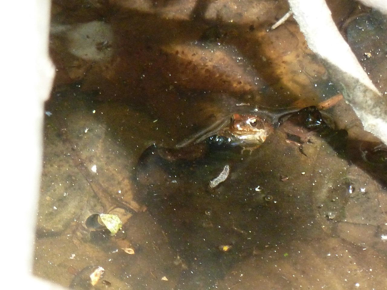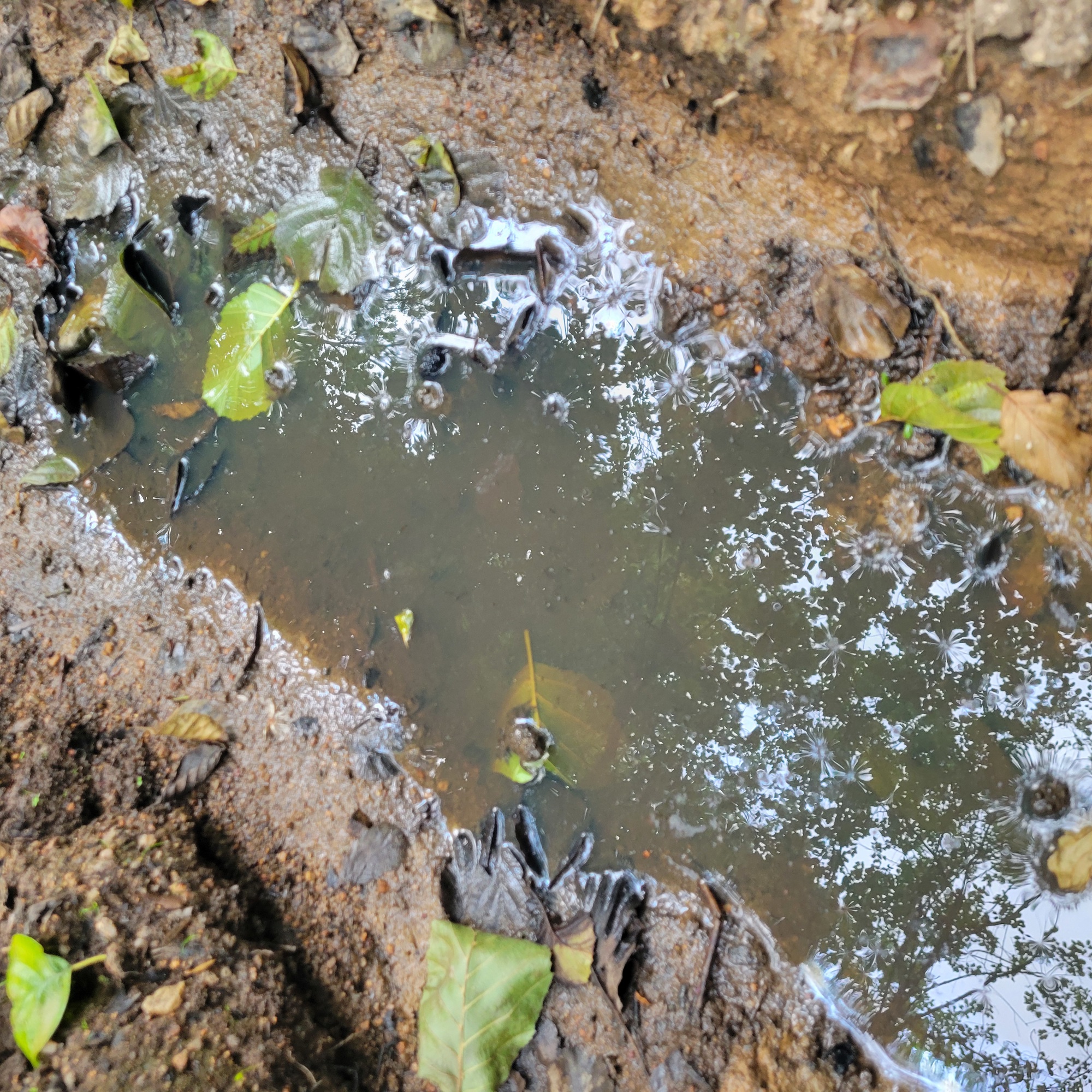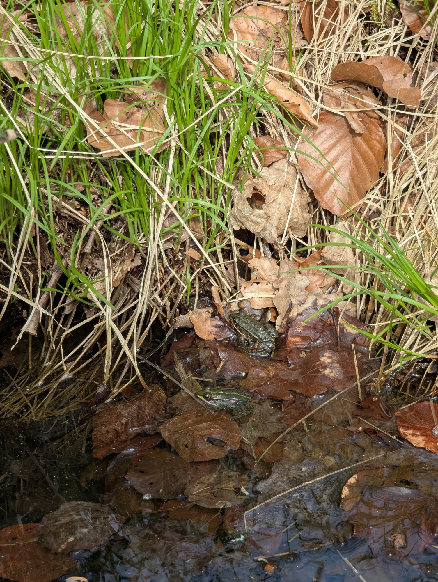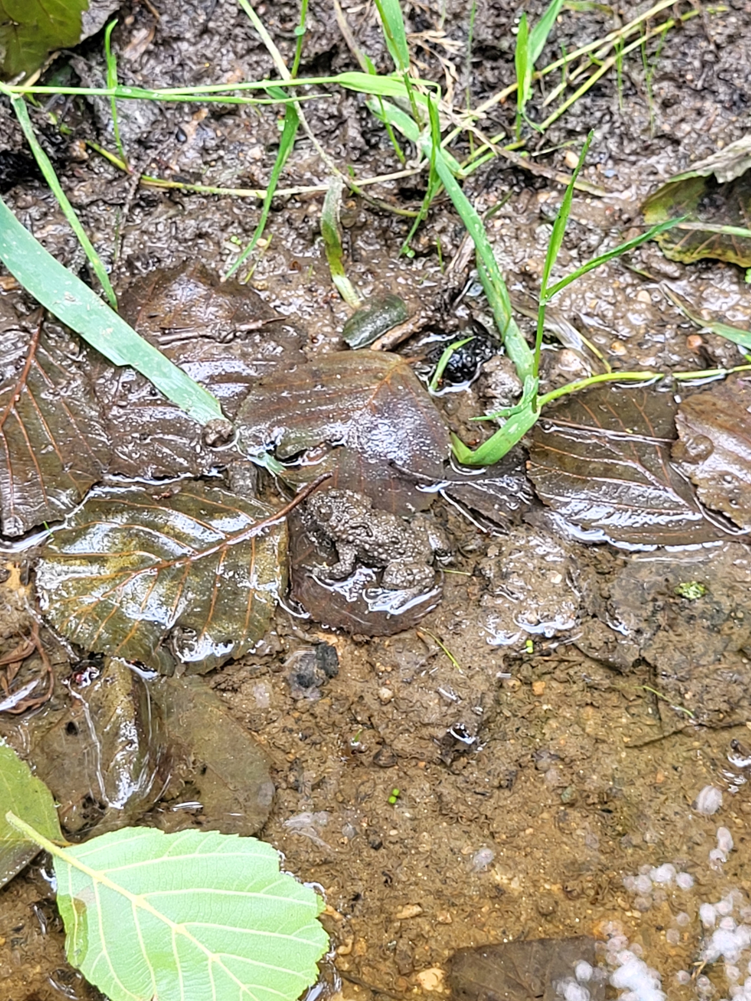 UnkenPr_AW6Jul19_Pfütze_m_Laub_Grasfrosch_o_Unken.JPG