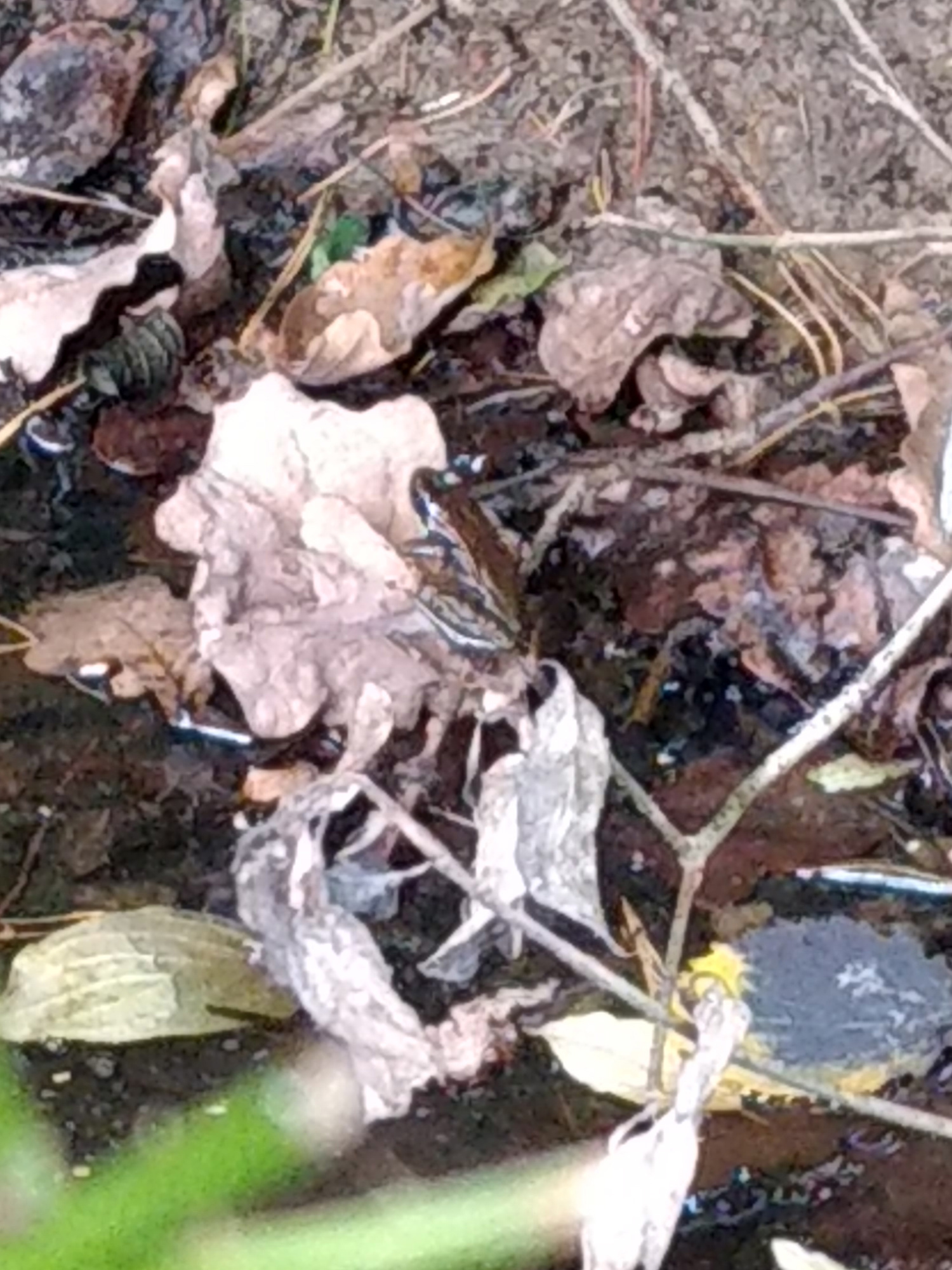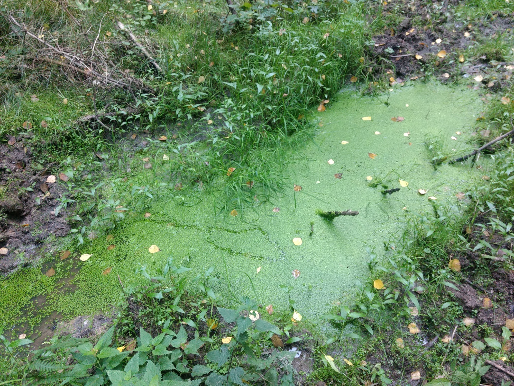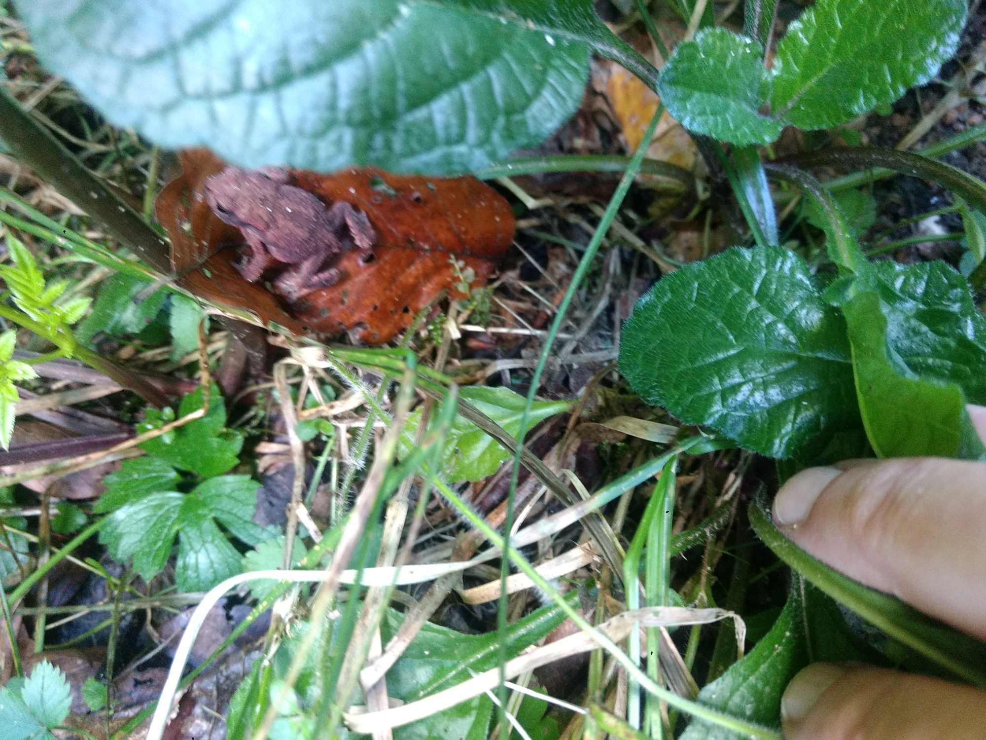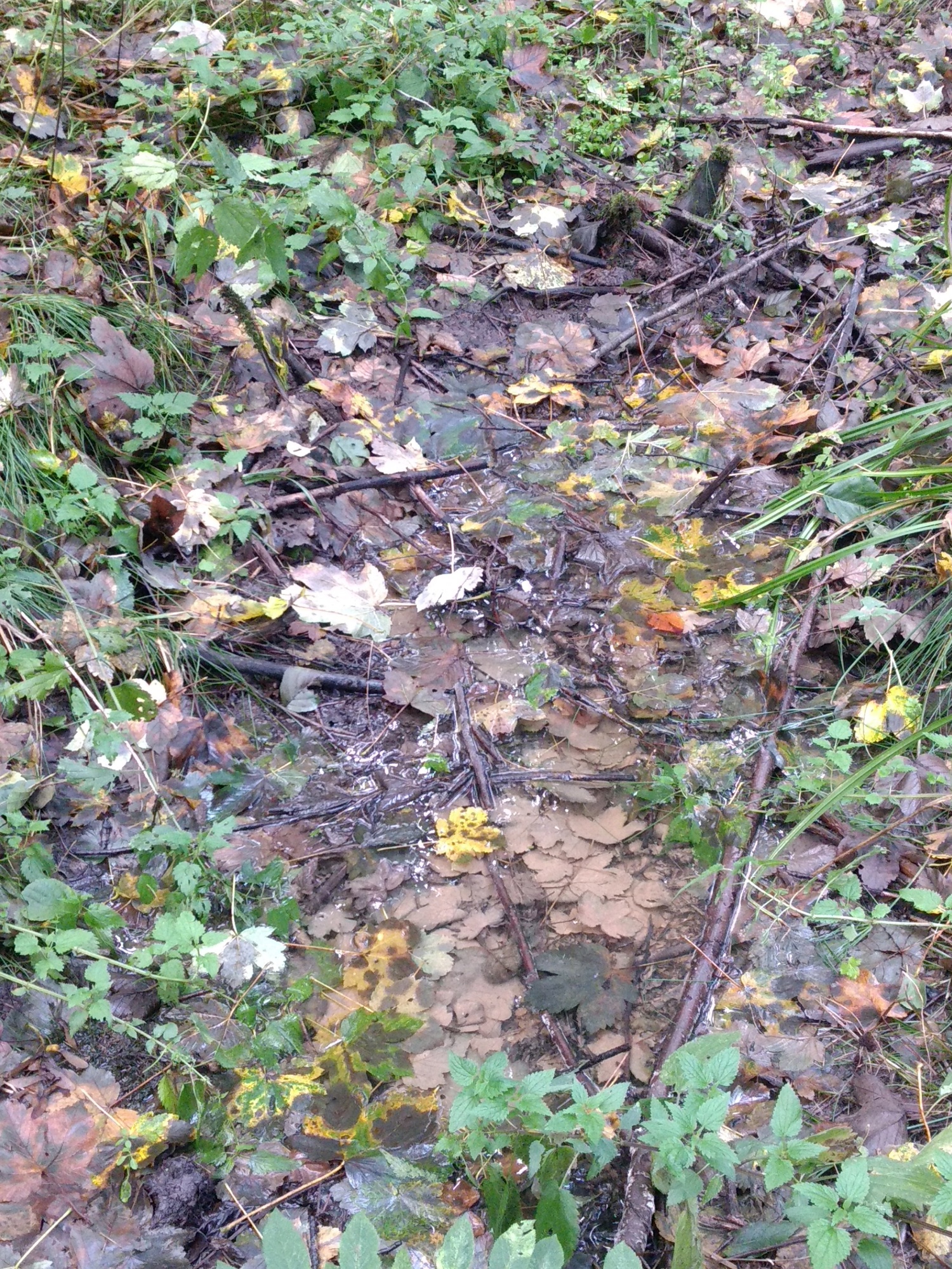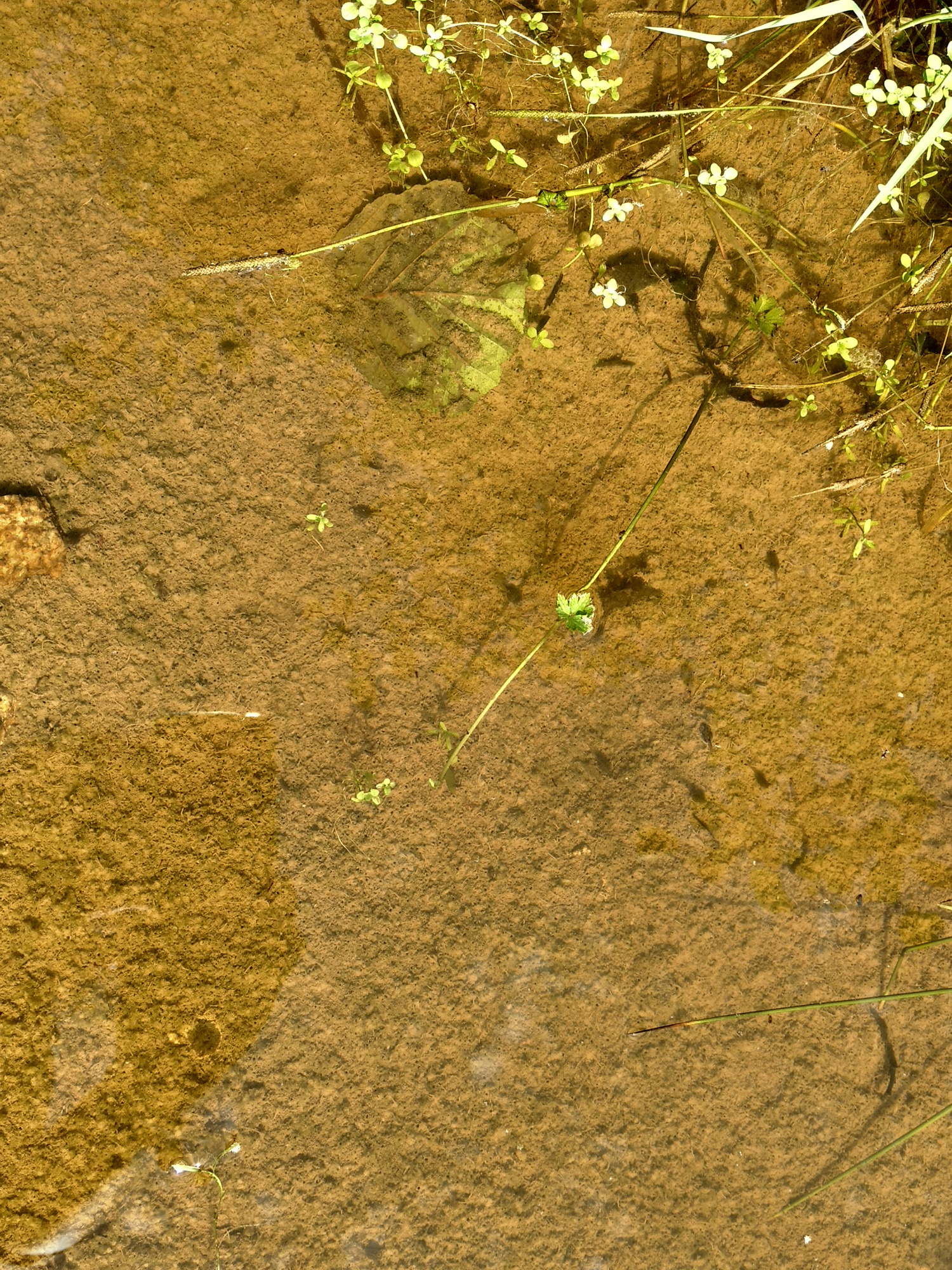 UnkenPr_AW6Jul19_Pfütze_m_Laub_Grasfrosch_o_Unken.JPG