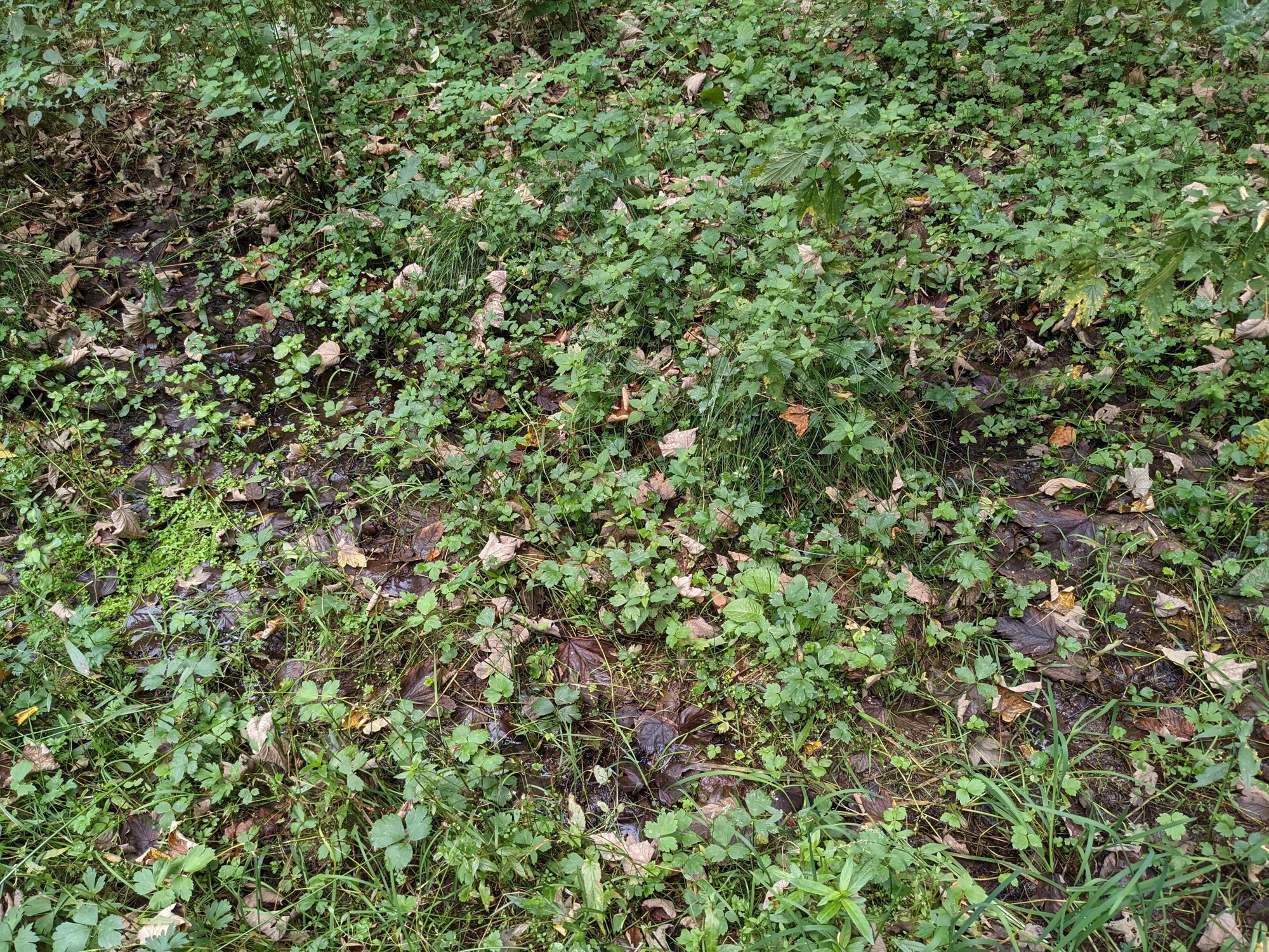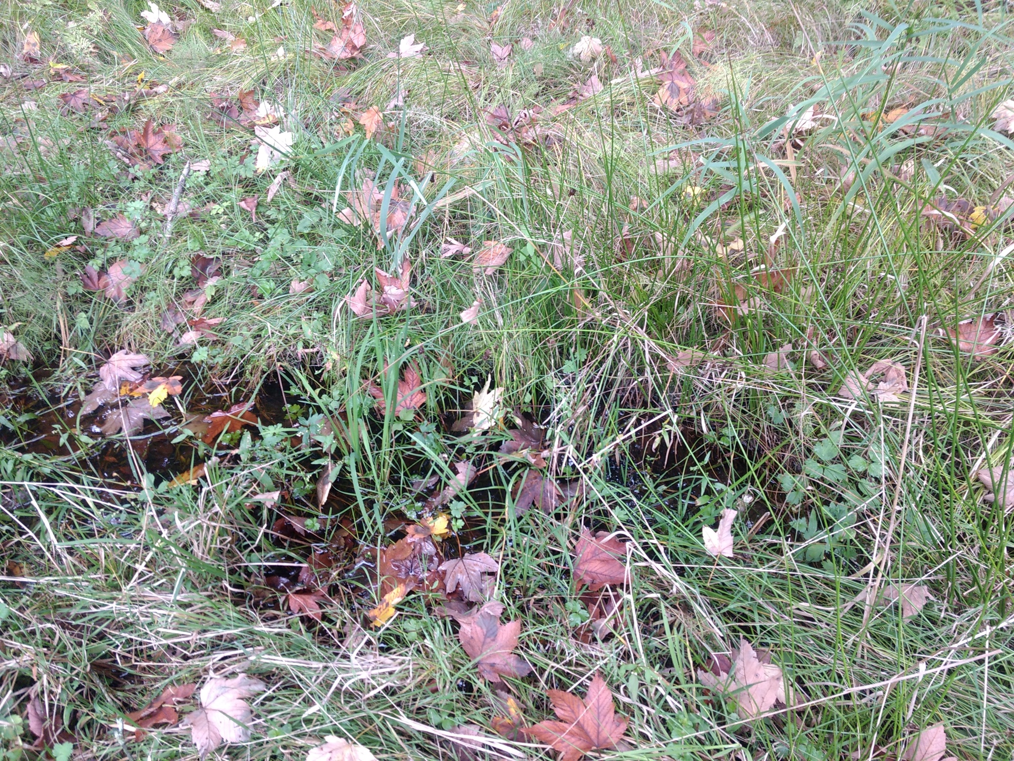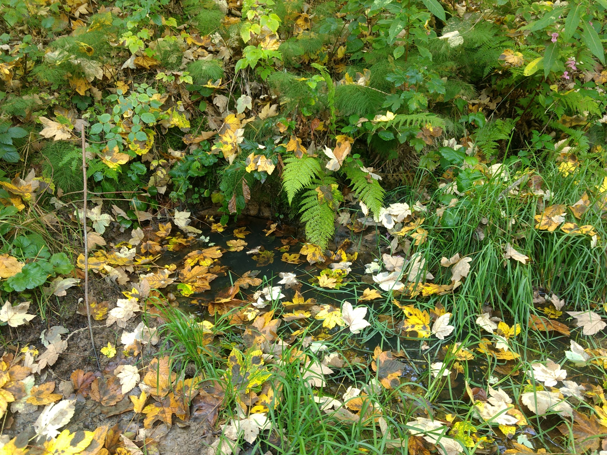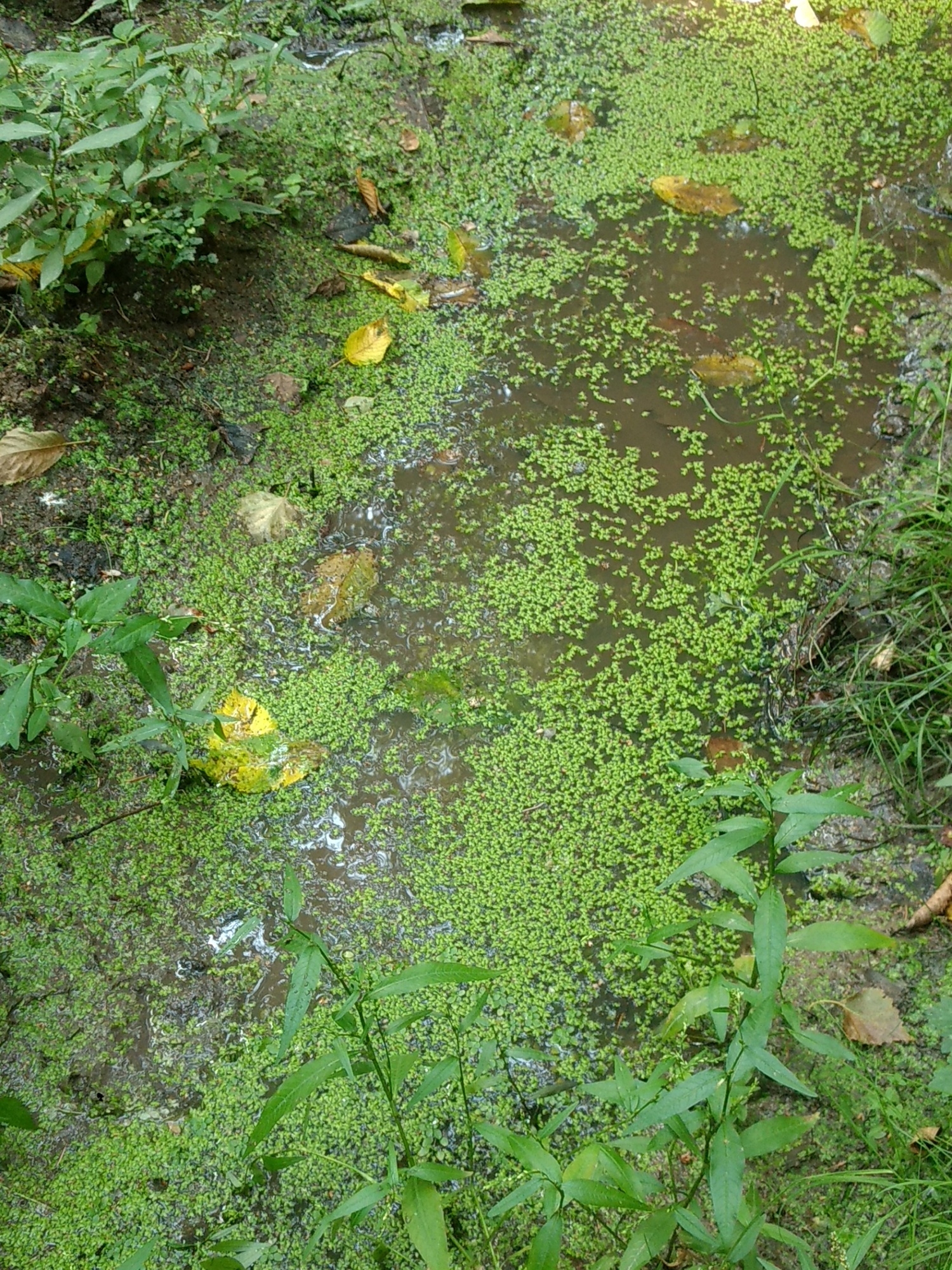 UnkenPr_AW6Jul19_Pfütze_m_Laub_Grasfrosch_o_Unken.JPG